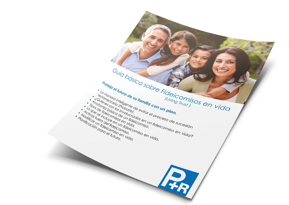 Entendemos la multitud de preguntas e inquietudes que rodean el tema de los fideicomisos en vida. Para ayudarte en tu camino, hemos compilado meticulosamente un folleto gratuito en PDF, diseñado como un recurso integral para iluminar las complejidades de los fideicomisos en vida. Desde conocimientos básicos hasta perspectivas avanzadas, nuestro folleto está adaptado para ofrecer claridad y orientación en cada etapa. Ya sea que estés dando tus primeros pasos en la planificación patrimonial o busques profundizar tu comprensión, este recurso es un testimonio de nuestro compromiso de empoderar a nuestros clientes con la información que necesitan.